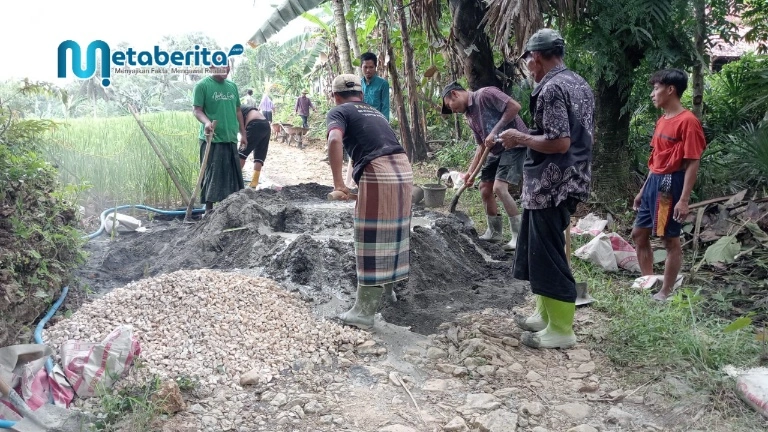 Pamekasan, Metaberita.com – Semangat gotong royong masyarakat kembali terlihat melalui gerakan swadaya untuk memperbaiki jalan akses penghubung Cekonce Timur, Desa Sana Tengah Kecamatan Pasean, Kabupaten Pamekasan, pada Sabtu, 14/02/2026. Jalan tersebut merupakan jalur penting yang menghubungkan Pondok Pesantren Bustanul Ulum Gil Panggil menuju Pancong Waru Timur.