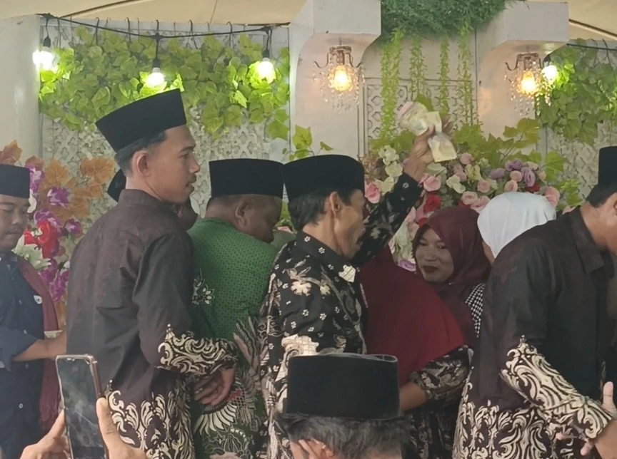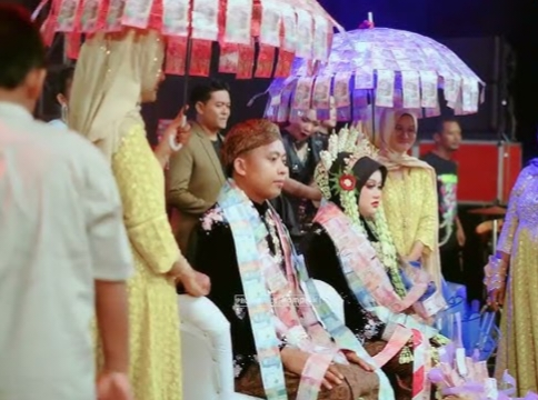 Suasana pun berubah meriah. Tamu undangan tidak hanya memberikan ucapan selamat, tetapi turut menaburkan uang sebagai bentuk partisipasi dalam momen kebahagiaan tersebut. Tak jarang, pakaian pengantin terlihat dipenuhi lembaran uang yang disematkan atau menempel. Tradisi ini dimaknai sebagai doa agar pasangan yang baru menikah memperoleh rezeki, keberkahan, serta kehidupan rumah tangga yang sejahtera.